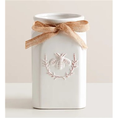 Get them buzzing with our charming bouquet! A garden-fresh gathering of blooms in sweet shades of lavender, purple, peach and pink come together for a mix of color and texture. Designed in our Sweet As Can Bee artisanal vase, featuring an adorable honey bee and raffia bow, it’s a gift that adds quaint beauty to any decor.